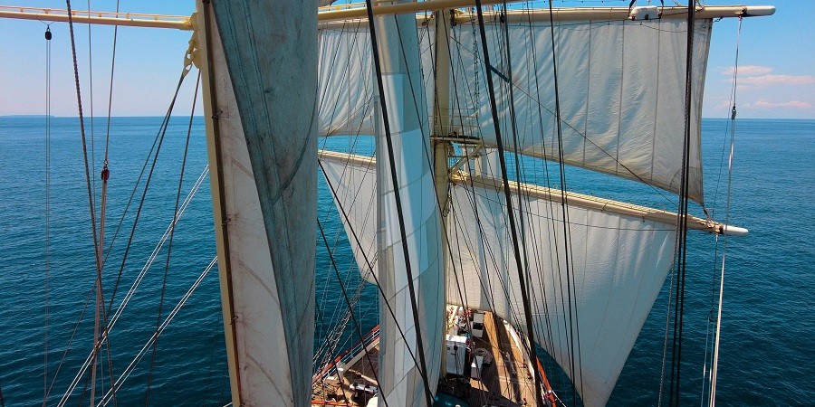 Salpiamo insieme su questa piccola nave creata per chi è alla ricerca della tradizione e del romanticismo dell'epoca leggendaria dei velieri, ma con i comfort dei giorni nostri. 115 metri di lunghezza, 3.300 metri quadrati di vele, sedici vele che si dispiegano al vento.